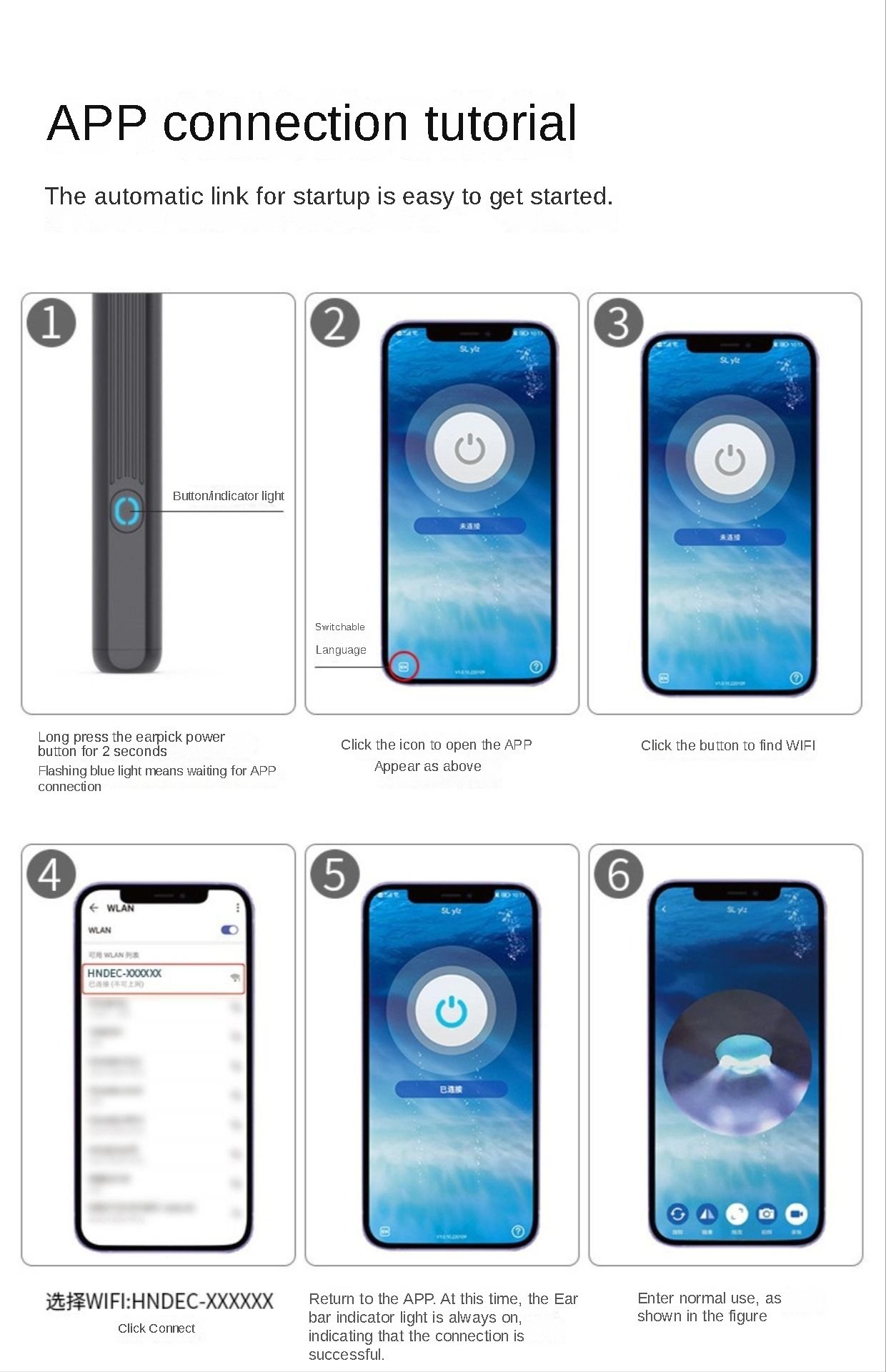 Note: Do not use the 'Smart Ear Cleaner High Precision with Camera LED' if you have a history of ear problems, such as ear infections, ear surgeries, or ear tubes. Consult a doctor if you have any concerns or experience any discomfort while using the device. Additionally, do not share the ear spoon with others to prevent the spread of bacteria and infection.